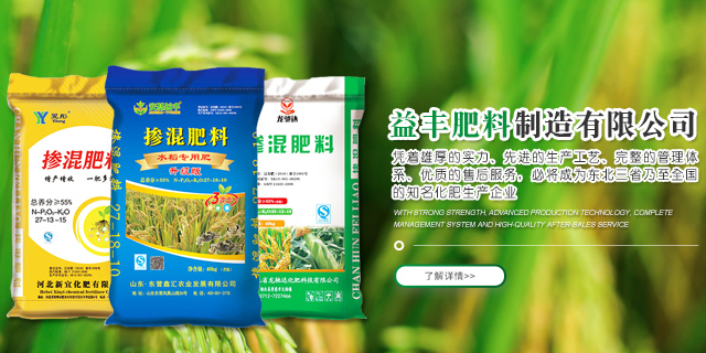 海城市益丰肥料制造有限公司成立于2018年7月,是一家新成立的化肥生产企业,公司秉承“信誉至上,创新产品,科学发展”的经营理念,产品不断增加,生产规模不断提高,销售市场逐年扩大。目前公司主要产品为掺混肥系列,年生产能力20万吨以上。同时代理国内各大品牌复合肥。